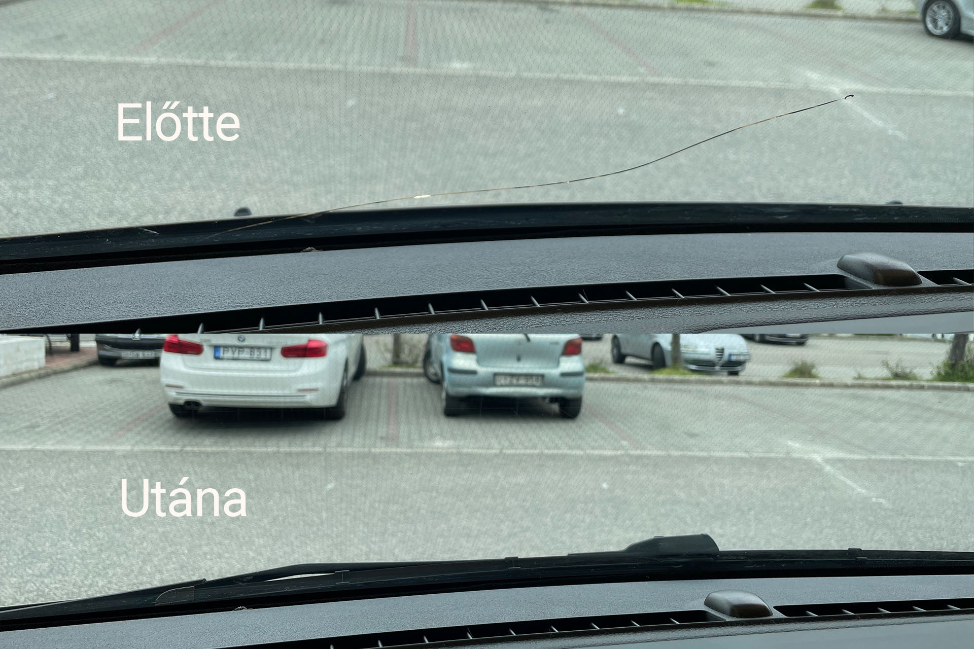 Szélvédő repedés és kőfelverődés szakszerű javítása a Bécsi úti Praktiker parkolójában
